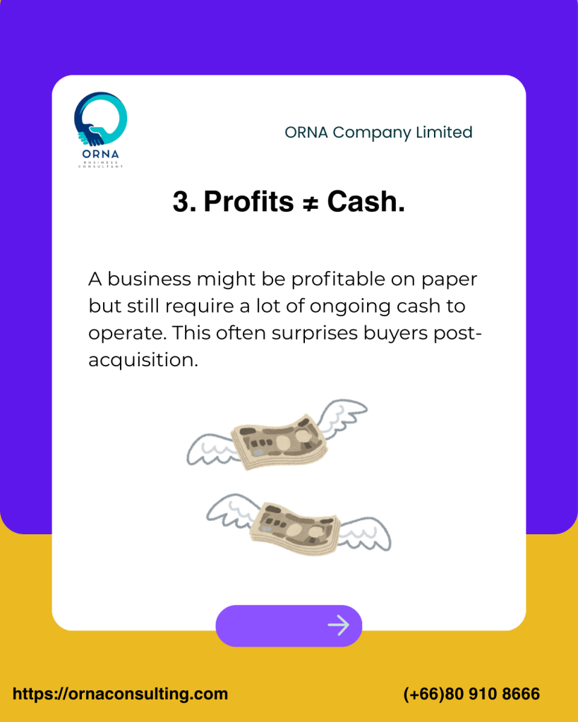 A business might be profitable on paper but still require a lot of ongoing cash to operate. This often surprises buyers post-acquisition.