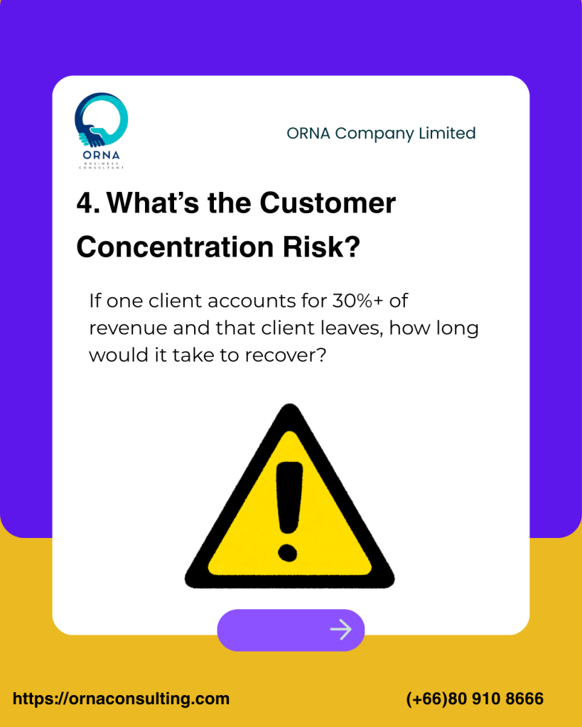If 30% or more of revenue comes from one or two customers, that’s a red flag. Even a profitable business can become unstable if a key client walks away.