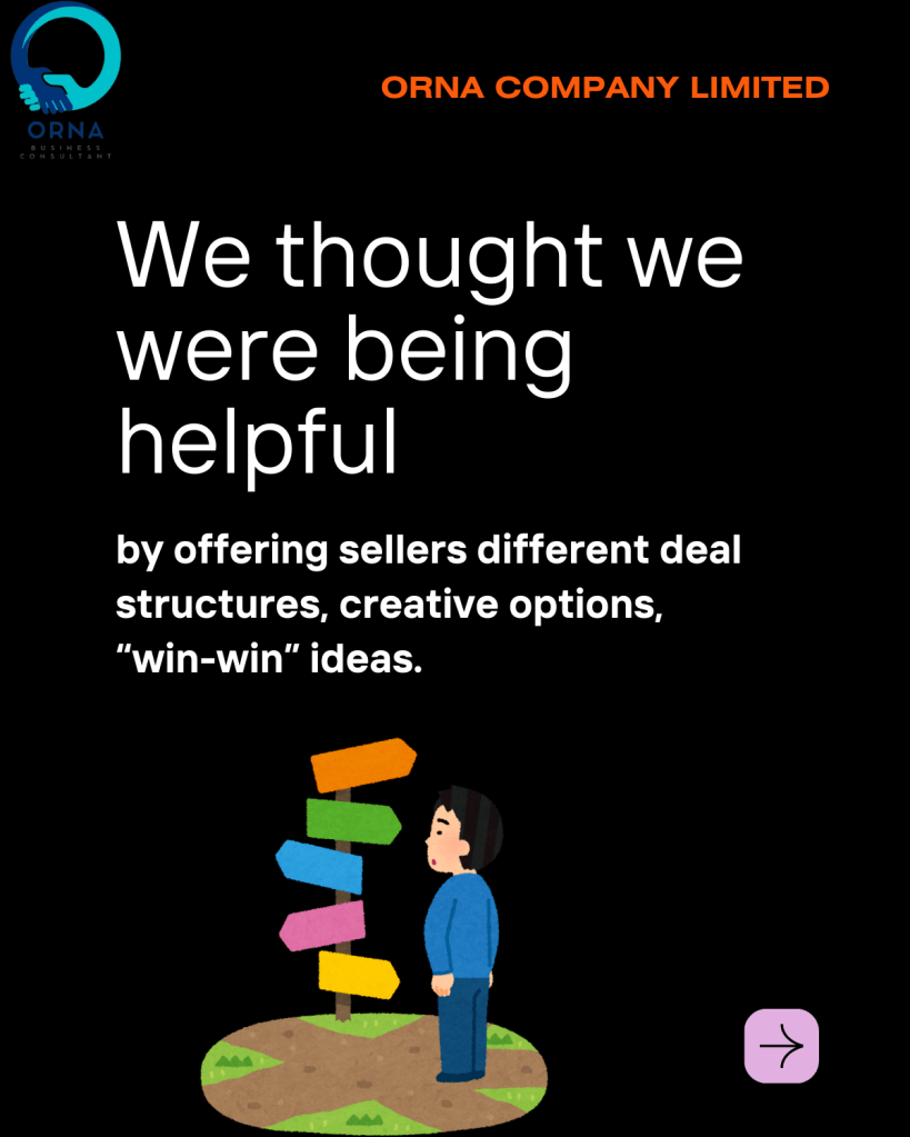 We thought we were being helpful by offering sellers different deal structures, creative options, “win-win” ideas.