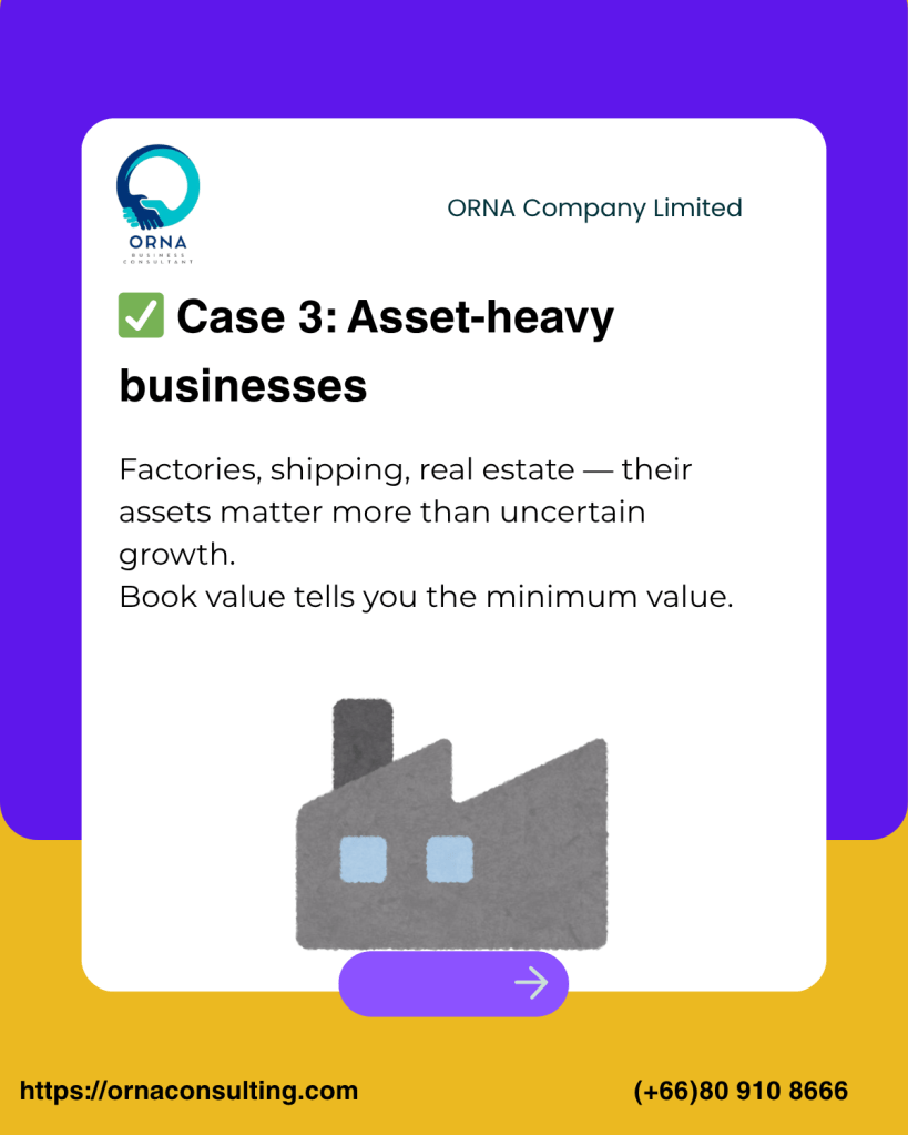 ✅ Asset-heavy companies — factories, real estate, etc.