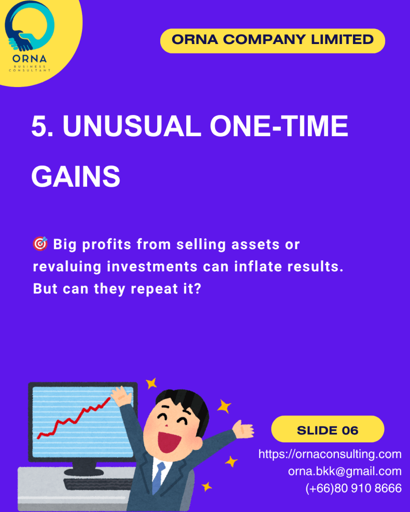 🚫 No spending on new assets or innovation? The current profit may be eating into the future.5. Unusual One-Time Gains