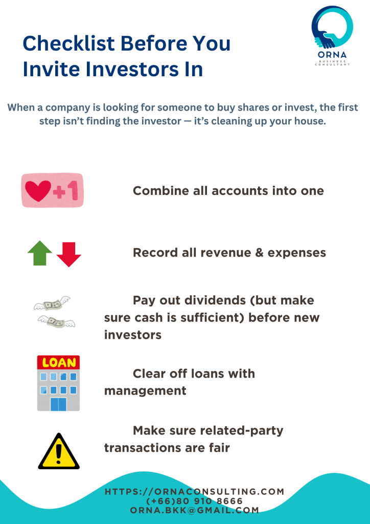 When a company is looking for someone to buy shares or invest, the first step isn’t finding the investor — it’s cleaning up your house.
