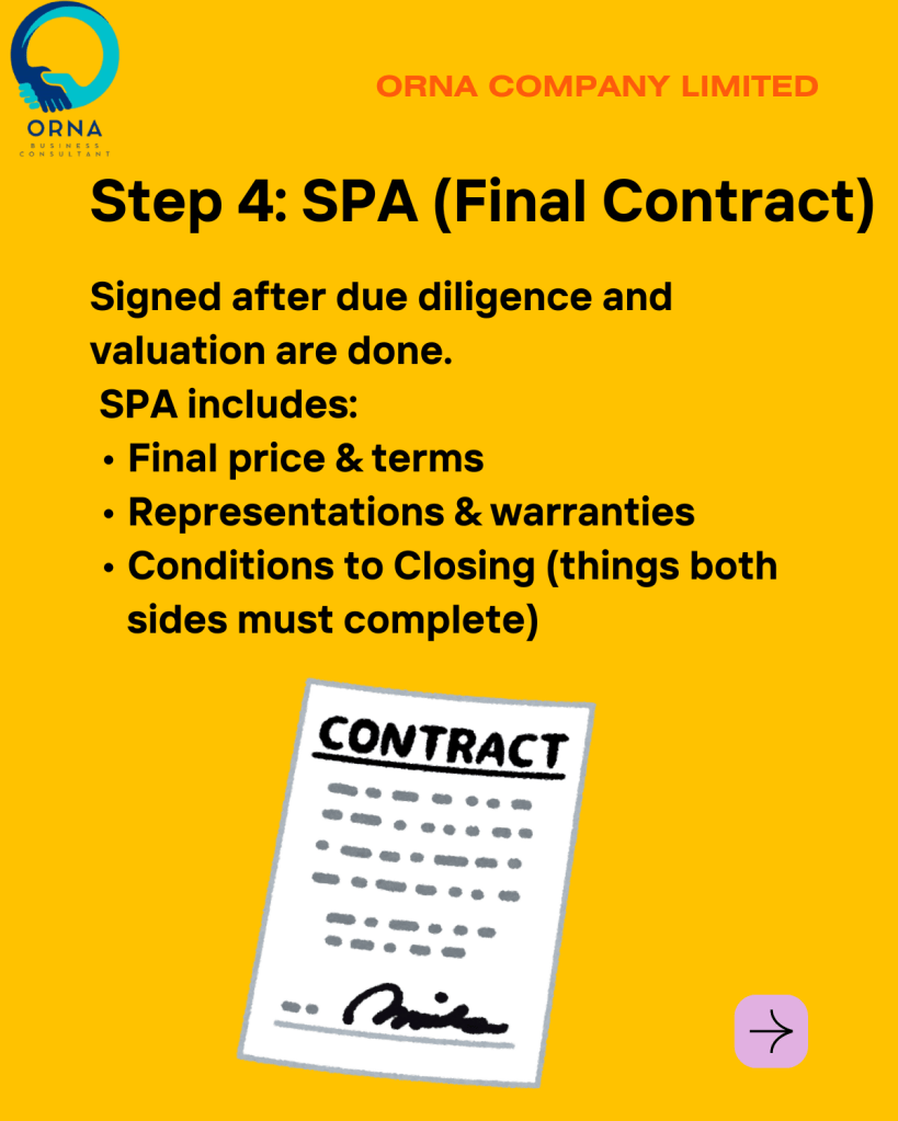 Once all conditions are met → money moves, shares transfer, deal complete.