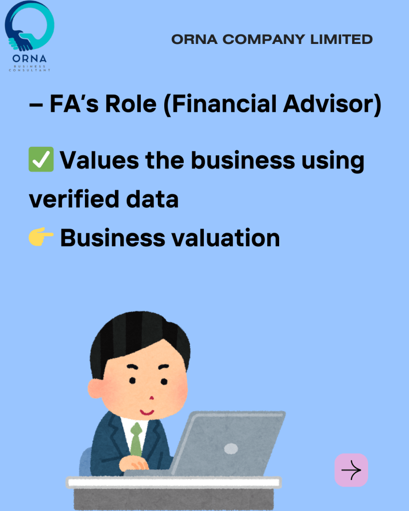 → to ensure the financial statements are correctly recorded, so the numbers used in valuation are reliable. - Financial Advisor (FA) conducts business valuation