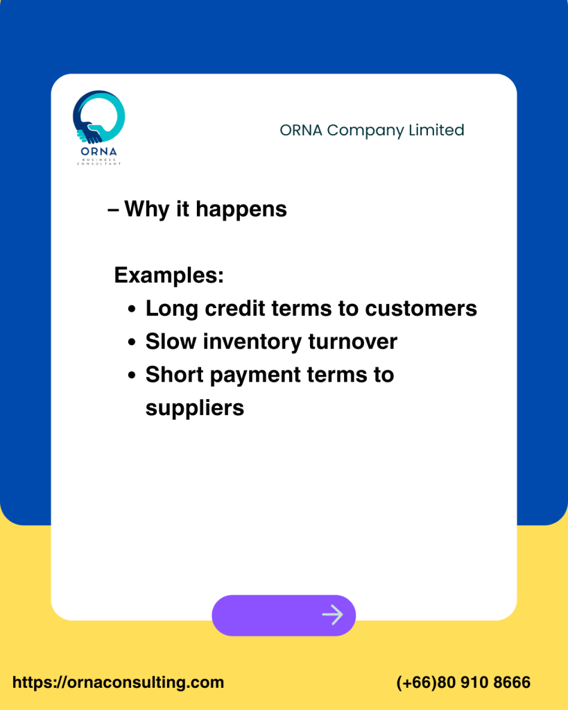 - Poor cash conversion cycle, for example: