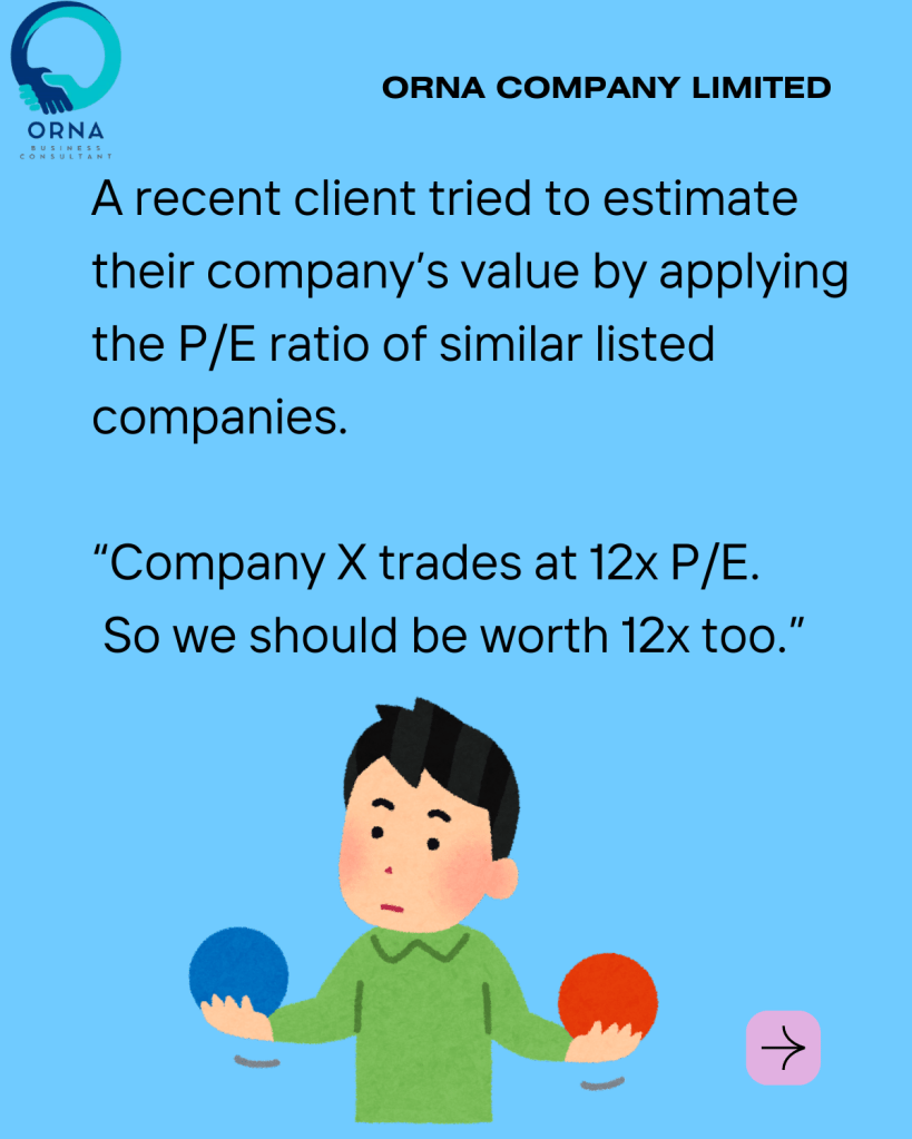 A recent client tried to estimate their company’s value by applying the P/E ratio of similar listed companies.