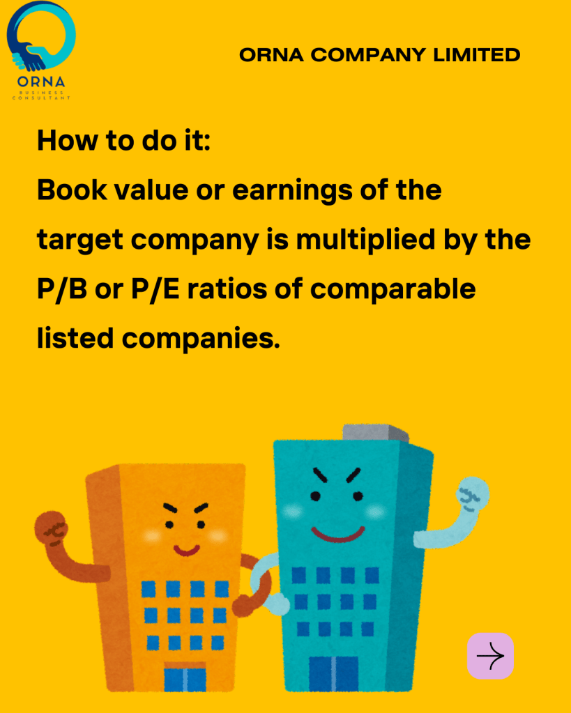 We take the book value or earnings of the target company (from the latest audited financial statements) and multiply it by the P/B or P/E ratios of comparable listed companies.