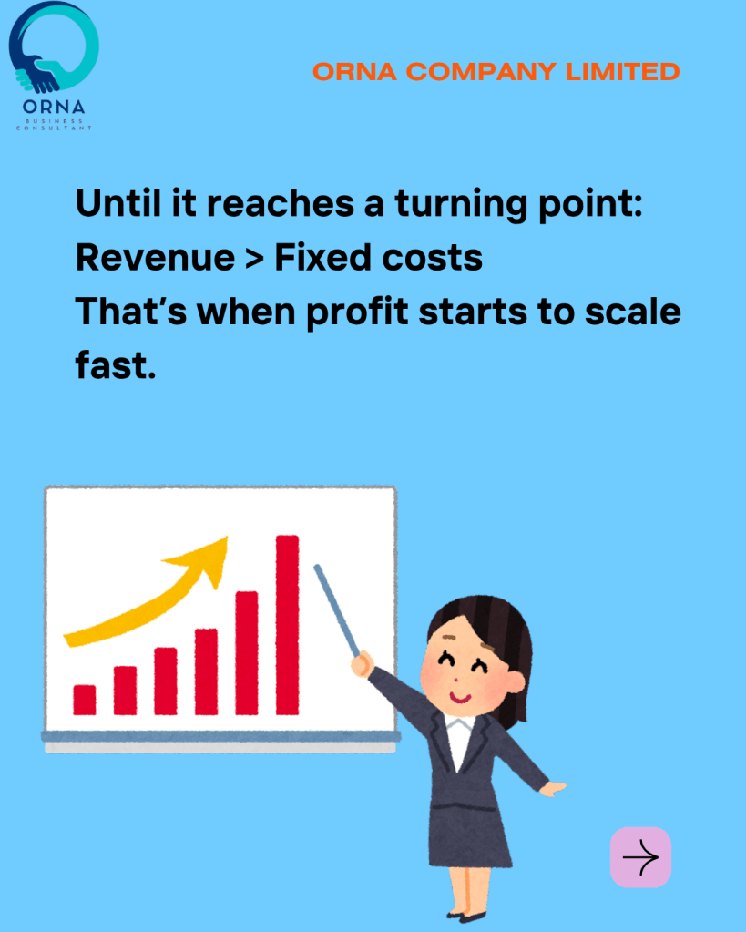 Once revenue passes a certain threshold and fully absorbs those fixed costs, profitability improves significantly.