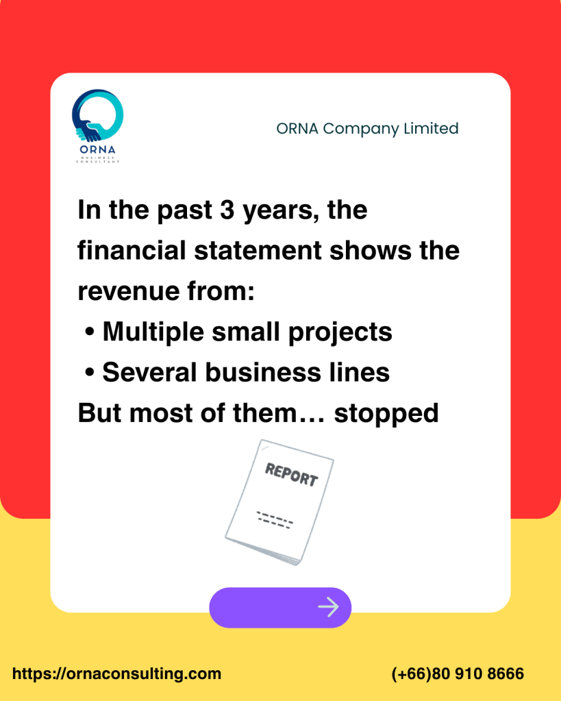 We recently worked on a company where the past 3 years looked busy with multiple projects and different revenue streams. Small engineering jobs here and there.