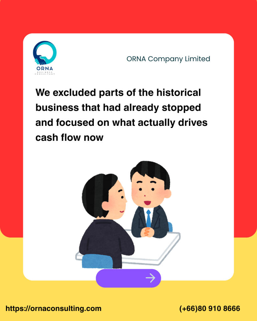 We had management interviews to confirm our understanding — and excluded parts of the historical business that had already stopped.